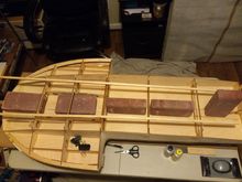 once I cut the tabs and prepared to turn over the boat I made sure to cut the jig to fit the Sponsons and then I screwed the boat square to it. filling 4 small holes was not an issue when keeping the boat square