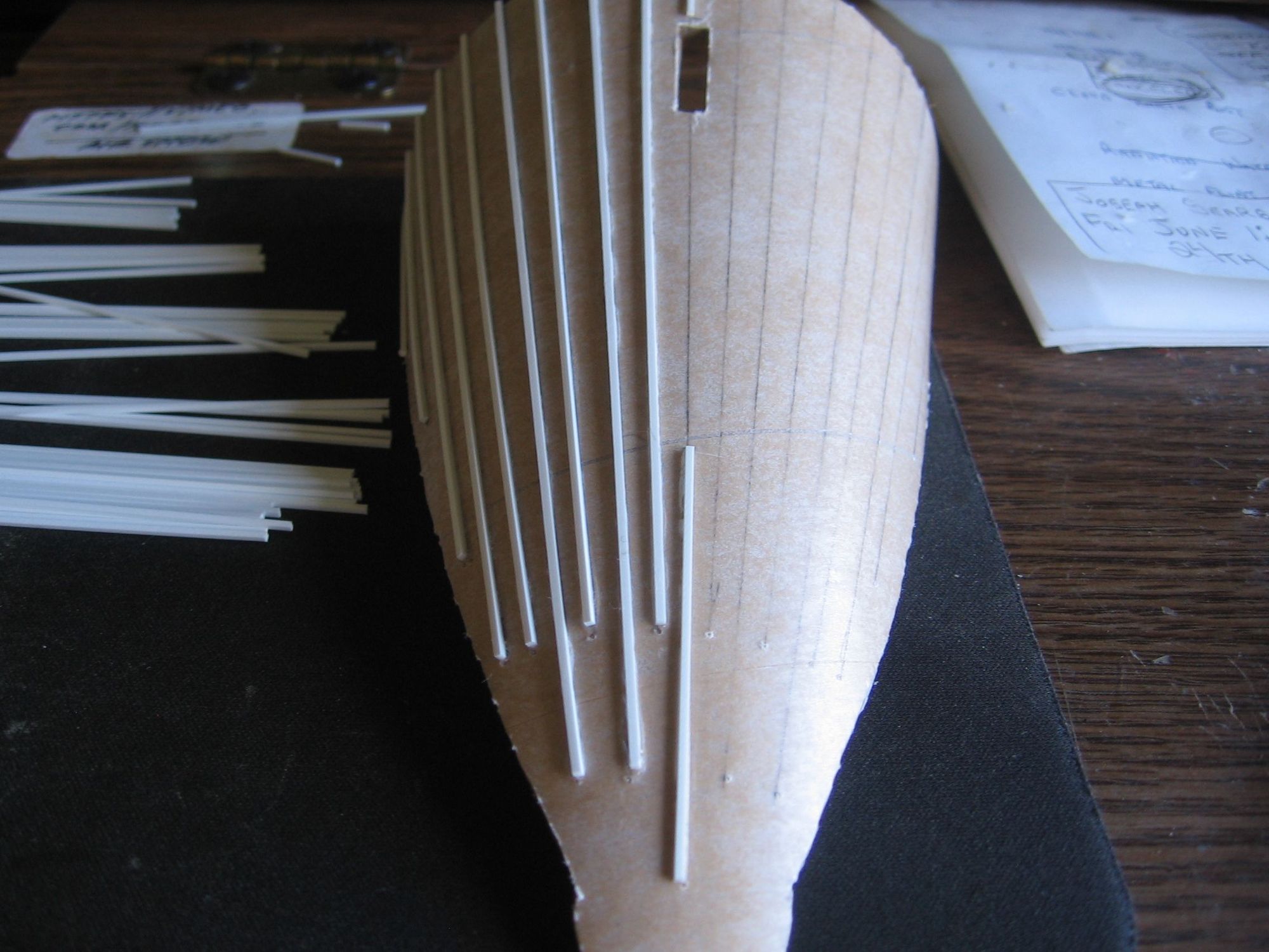 And now the beginning of the stringers using CA glue.