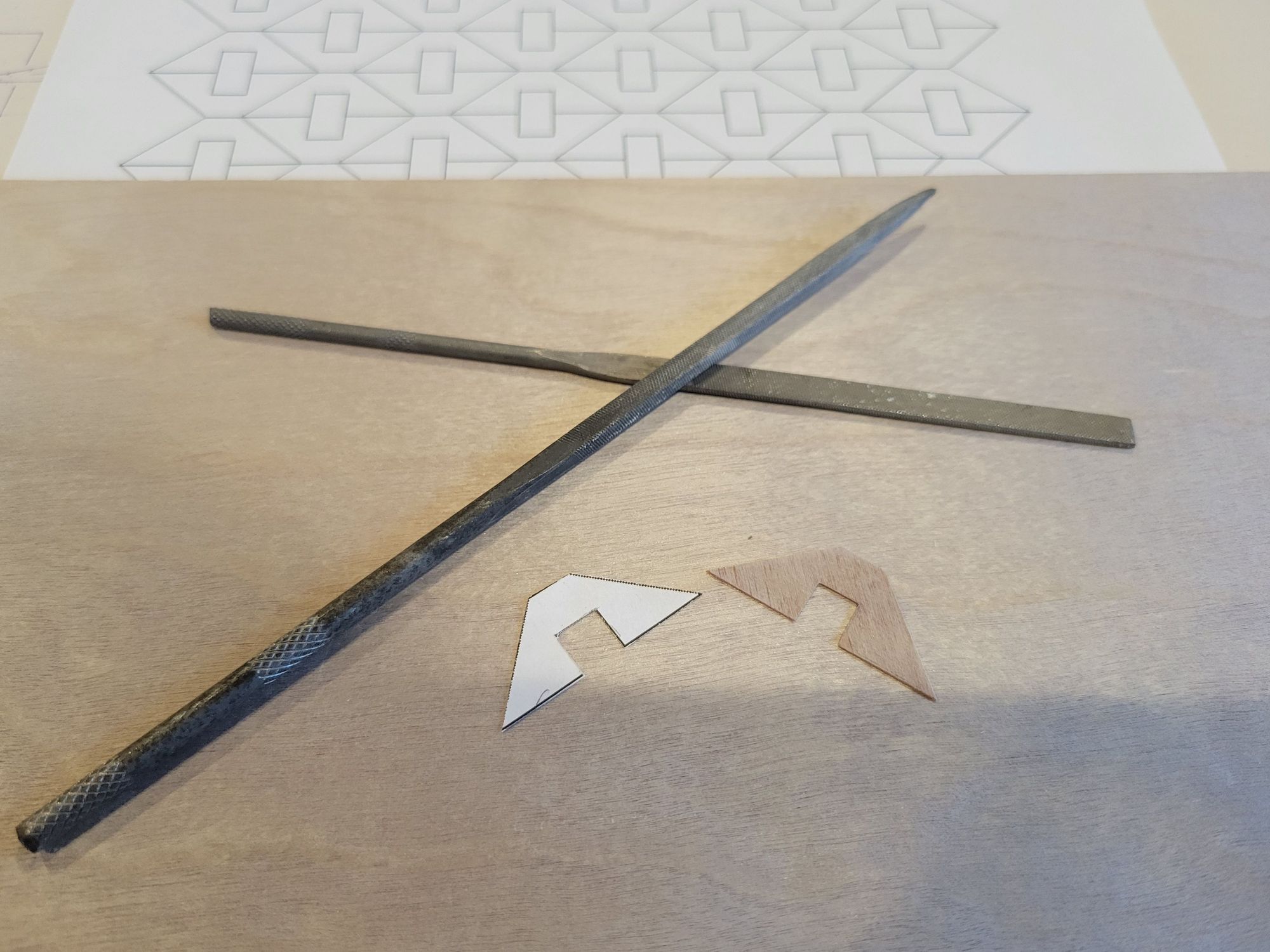 Here I have freed one of the paper gussets from the sheet and made a master gusset from plywood that will be used to make the rest that are needed.