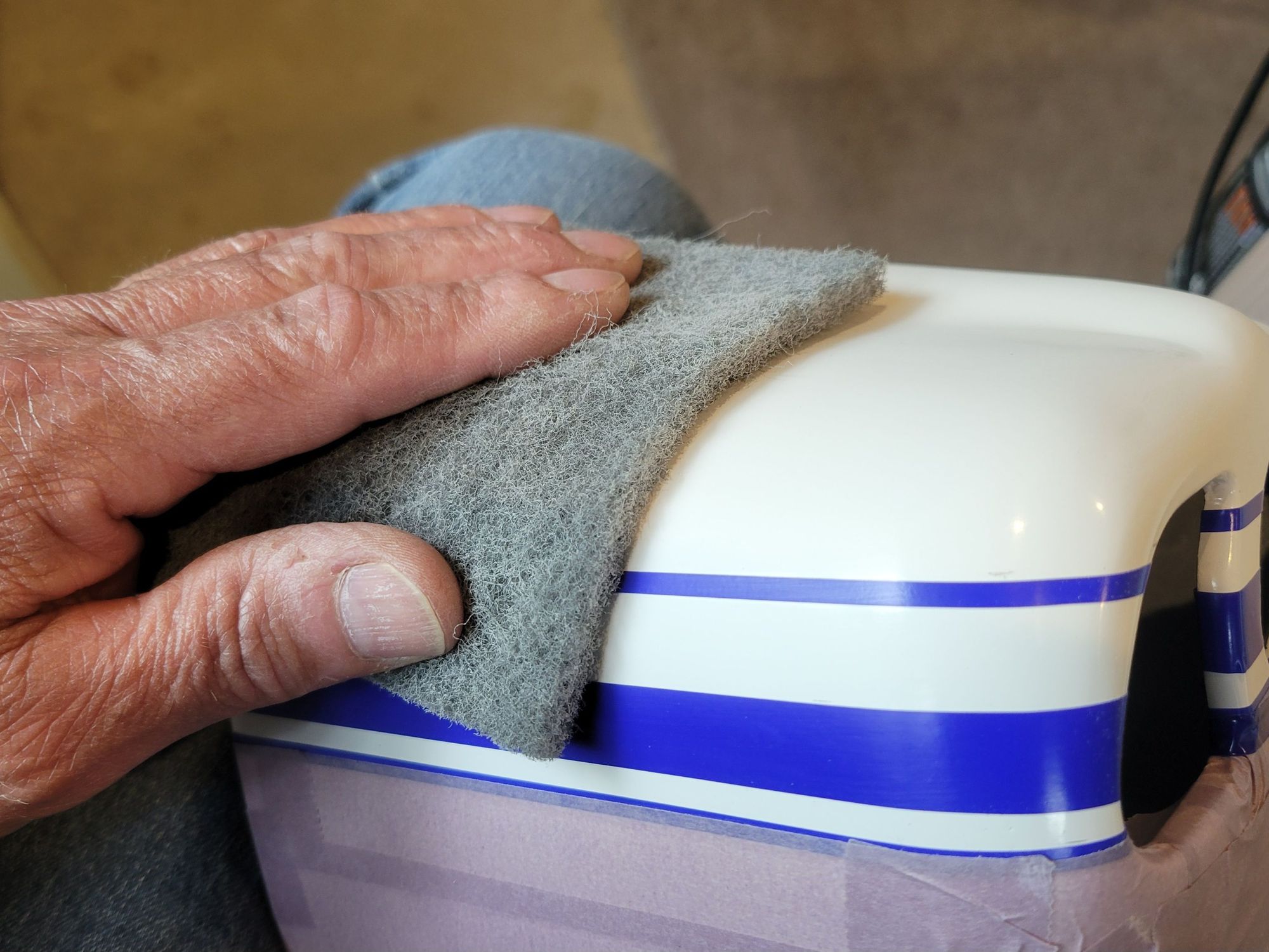 To prep the surface before the yellow is sprayed, I like to use a soctch bright pad to give the surface a little "tooth" for the paint to bond to.